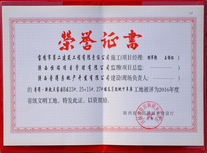 2016年省級文明工地(普得﹒新起點家園