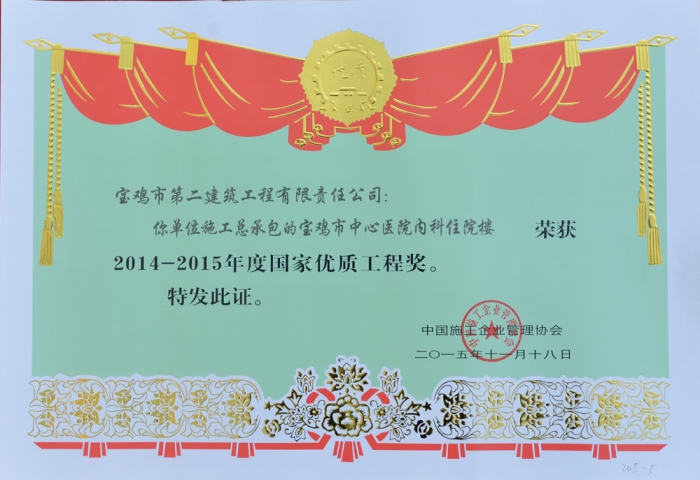國(guó)家優(yōu)質(zhì)工程獎(jiǎng)(寶雞市