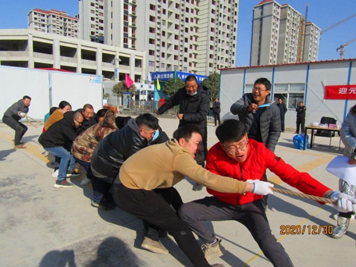 2020年12月31日,秦漢和苑項(xiàng)目部聯(lián)合西安國采、陸港·金海岸兩個(gè)兄弟項(xiàng)目在秦漢和苑項(xiàng)目生活區(qū)內(nèi)開展了“迎新年·慶元旦”文體活動(dòng)。70余名項(xiàng)目部員工參加。