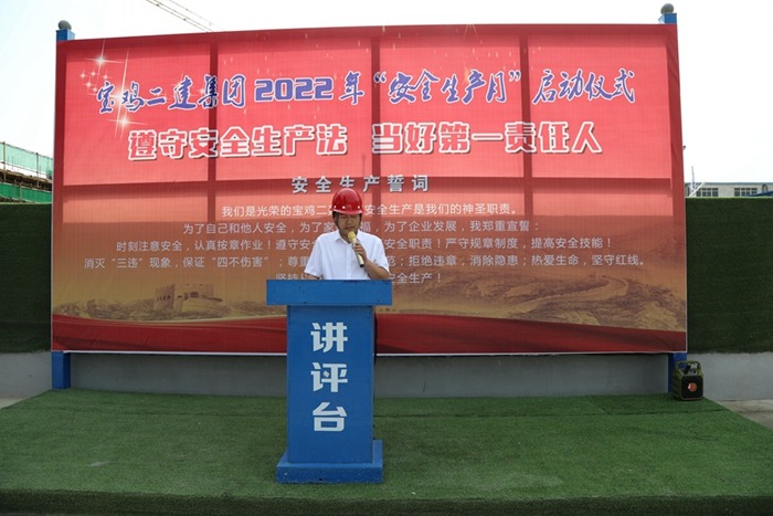 總經(jīng)理?xiàng)罱桨l(fā)表講話。他表示,今天是端午佳節(jié),集團(tuán)公司召開“安全生產(chǎn)月”啟動(dòng)儀式暨動(dòng)員大會(huì),意義非凡,他代表集團(tuán)公司向節(jié)日期間堅(jiān)守奮戰(zhàn)一線的員工們致以崇高的敬意和美好的祝福,并對(duì)“安全生產(chǎn)月”活動(dòng)提出三點(diǎn)要求:一是充分認(rèn)識(shí)開展“安全生產(chǎn)月”活動(dòng)的重要性,學(xué)習(xí)安全生產(chǎn)法,做到守法履責(zé)。二是持續(xù)開展“安全生產(chǎn)萬里行”,認(rèn)真做好“安全生產(chǎn)月”活動(dòng),分類強(qiáng)化安全生產(chǎn)警示教育。三是高度重視、強(qiáng)化統(tǒng)籌,建立“安全生產(chǎn)月”長效機(jī)制。他強(qiáng)調(diào),安全生產(chǎn)是企業(yè)的頭等大事,要以此活動(dòng)為契機(jī),廣泛開展《安全生產(chǎn)法》主題宣傳活動(dòng),要始終把安全生產(chǎn)放在第一位,持續(xù)深入學(xué)習(xí)貫徹習(xí)近平總書記關(guān)于安全生產(chǎn)重要論述,積極推動(dòng)落實(shí)安全生產(chǎn)十五條措施,統(tǒng)籌理解安全與發(fā)展的關(guān)系,進(jìn)一步凝聚安全生產(chǎn)發(fā)展共識(shí),弘揚(yáng)安全文化,促進(jìn)集團(tuán)公司安全生產(chǎn)形勢持續(xù)穩(wěn)定。