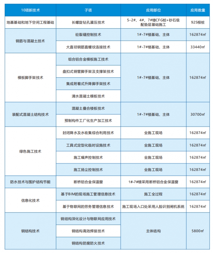 應(yīng)用建筑業(yè)十項(xiàng)新技術(shù)共10大項(xiàng)、21子項(xiàng)。