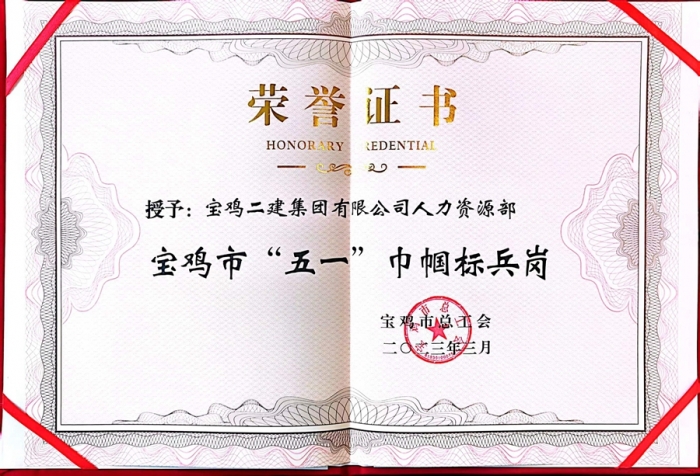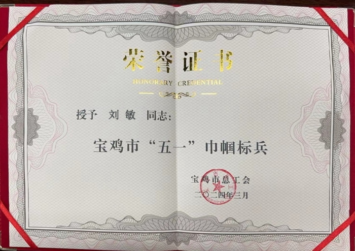 3月8日,在寶雞市總工會召開的第七屆二次女職委全委會上,第十七項目部女職工劉敏被授予“五一巾幗標(biāo)兵”稱號。集團公司始終為女職工提供干事創(chuàng)業(yè)的廣闊舞臺,多年來,先后有14名女職工獲得各級各類巾幗標(biāo)兵稱號,2個集體被授予“五一巾幗標(biāo)兵崗”。