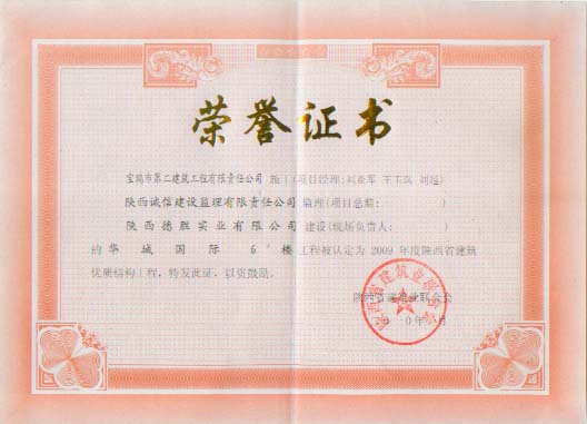 2009年省級優(yōu)質(zhì)結(jié)構(gòu)工程(華城國際)